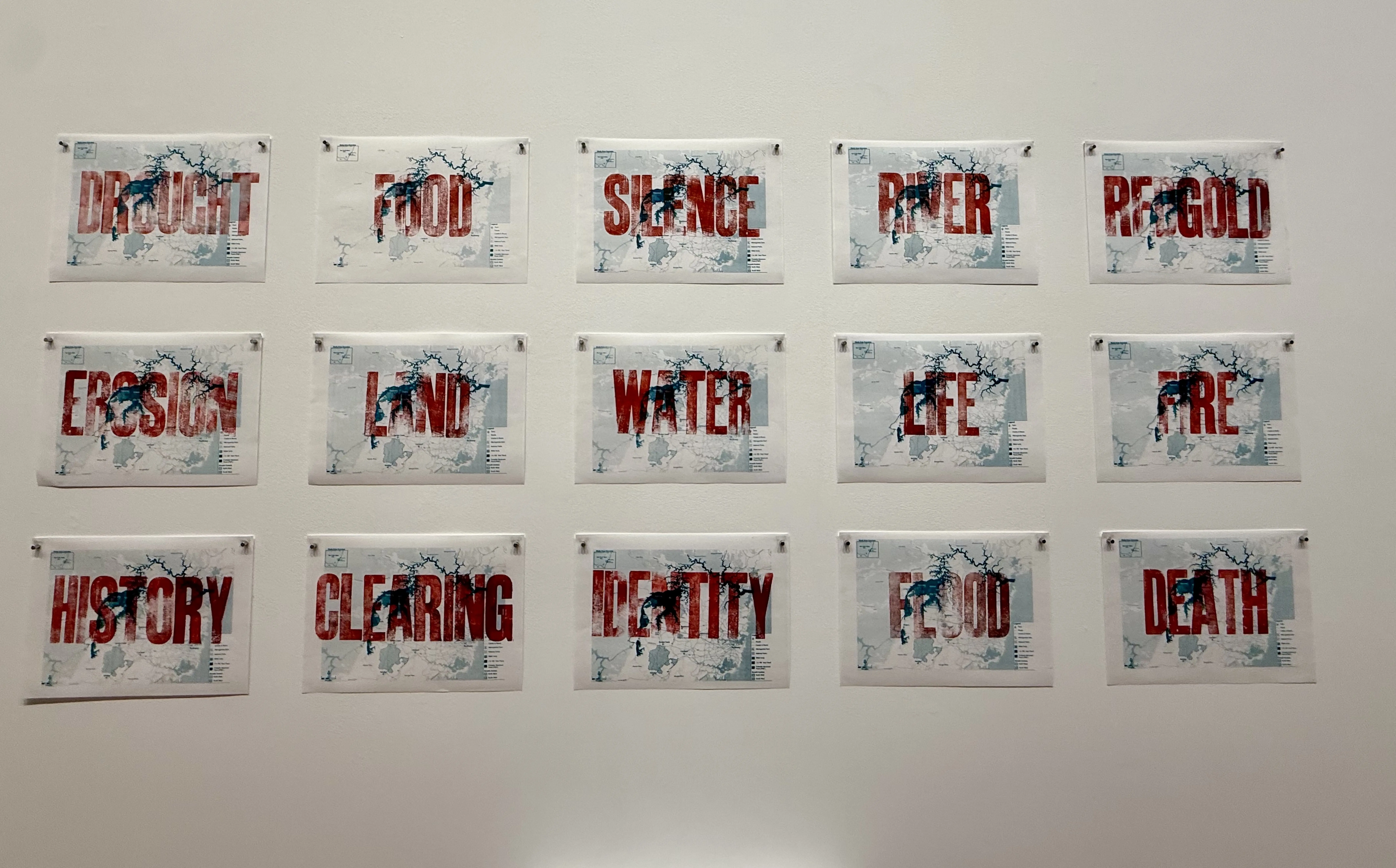 This artwork speaks with the voice of the river. The image captures a flooded landscape, while the printed words represent what the river might tell us—if we were listening. It’s a visual and textual reflection on the relationship between human impact and natural systems, and a reminder of the stories held in water.